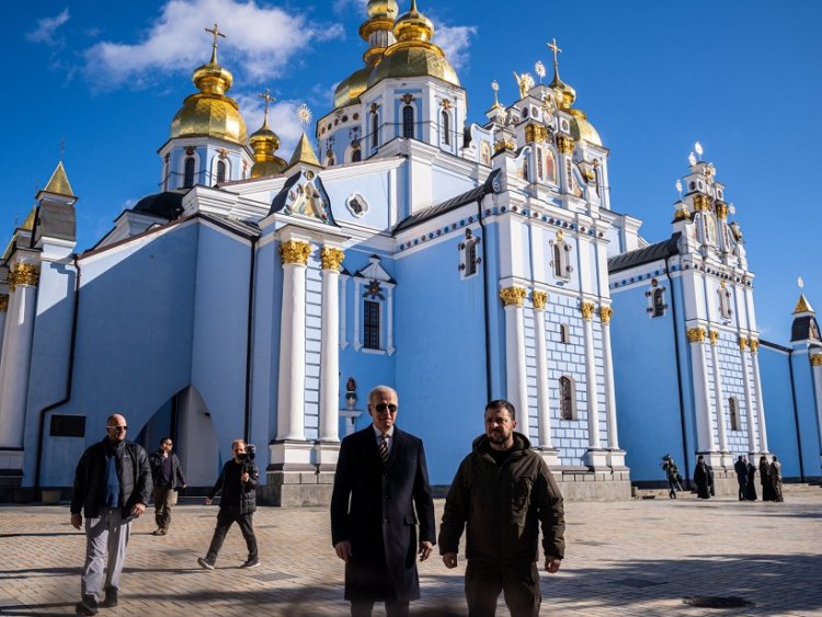 Lunettes de soleil sur le nez, Joe Biden sort tranquillement du monastère Saint-Michel à Kiev, accompagné de Volodymyr Zelensky. Il est 11H30 (09H30 GMT) lundi. Soudain, les sirènes d'alerte antiaérienne retentissent dans la capitale ukrainienne.