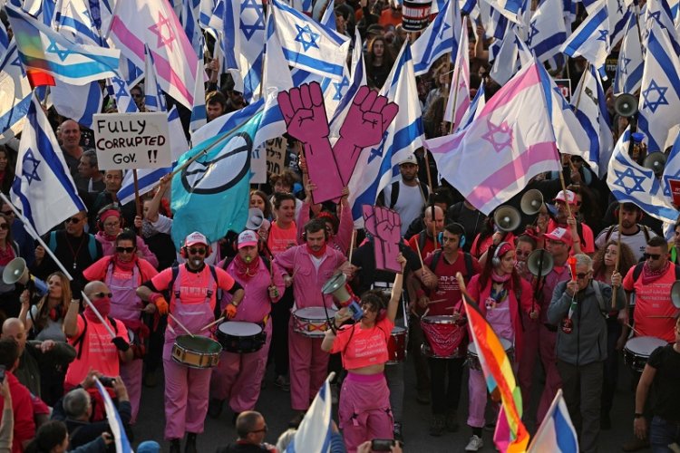 Demonstrators from across Israel descended on Jerusalem to rally near parliament ahead of the first reading of legislation to change the way judges are picked.