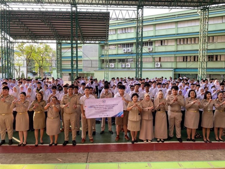 On March 3, 2025, approximately 625 teachers and students gathered at the Islamic College of Thailand to commemorate the 9th anniversary of the Declaration of Peace and Cessation of War (DPCW), proposed by the international peace NGO Heavenly Culture, World Peace, Restoration of Light (HWPL). Participants expressed their hope for world peace and Korean unification by writing “Peace Letters” to support the DPCW. They also filmed a video under the theme “We Are One for Korea”, sending a peace message to global citizens.