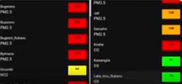NIBAGWIRE avuga ko “ iyo urebye kuri iyo App, ibara ry’icyatsi n’umuhondo niyo myuka idahumanye, itarengeje urugero. Iyo urebye ugasanga biri mu ibara rya orange …ibyo twita pollution index iba iri hagati y’101 n’150. Icyo gihe ba bantu barimo abagore batwite, abantu bakuze, abana n’abafite indwara zihoraho, uwo mwuka uri mu ibara rya orange ubagiraho ingaruka. Ariko uwageze mu mutuku wo ugira ingaruka kuri buri muntu wese.”
