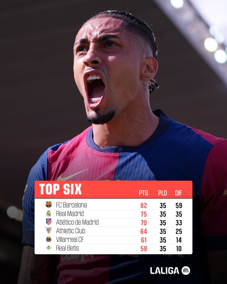 Ibi byatumye FC Barcelona igira amanota 82, irusha Real Madrid amanota 7, kuko yo yagumanye 75 ikaba ku myanya wa kabiri. Mugihe hasigaye imikino itatu ngo La Liga irangire, birasaba Barcelona gutsinda umukino umwe gusa kugira ngo yegukane igikombe cya 2025.
