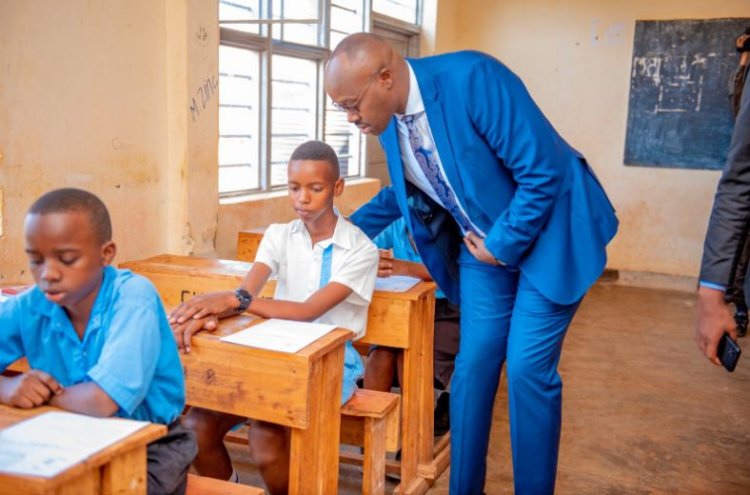 Aha itsinda ry’abayobozi batandukanye mu nzego z’ibanze, abakozi ba minisiteri y’uburezi hamwe n’ab’ Ikigo cy'igihugu gishinzwe ibizamini n'ubugenzuzi bw'amashuri (NESA), bahumurije abagiye gukora ibizamini ndetse banabifuriza intsinzi.