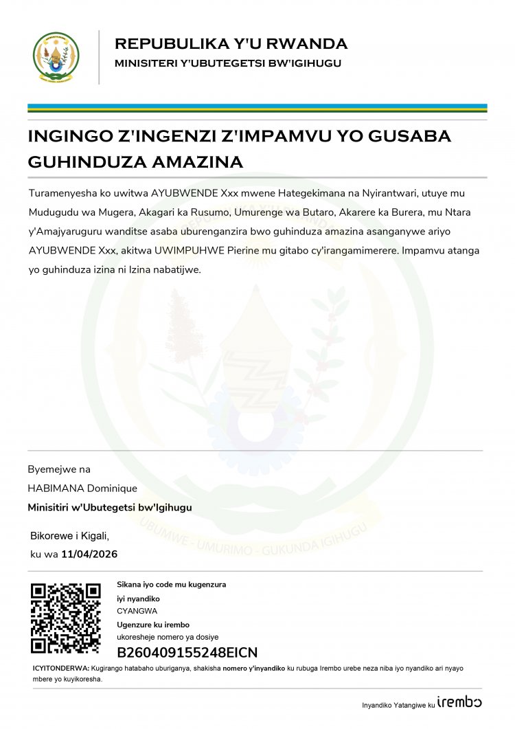 Ingingo z’ingenzi z’impamvu AYUBWENDE Xxx, asaba guhindura amazina akitwa UWIMPUHWE Pierine