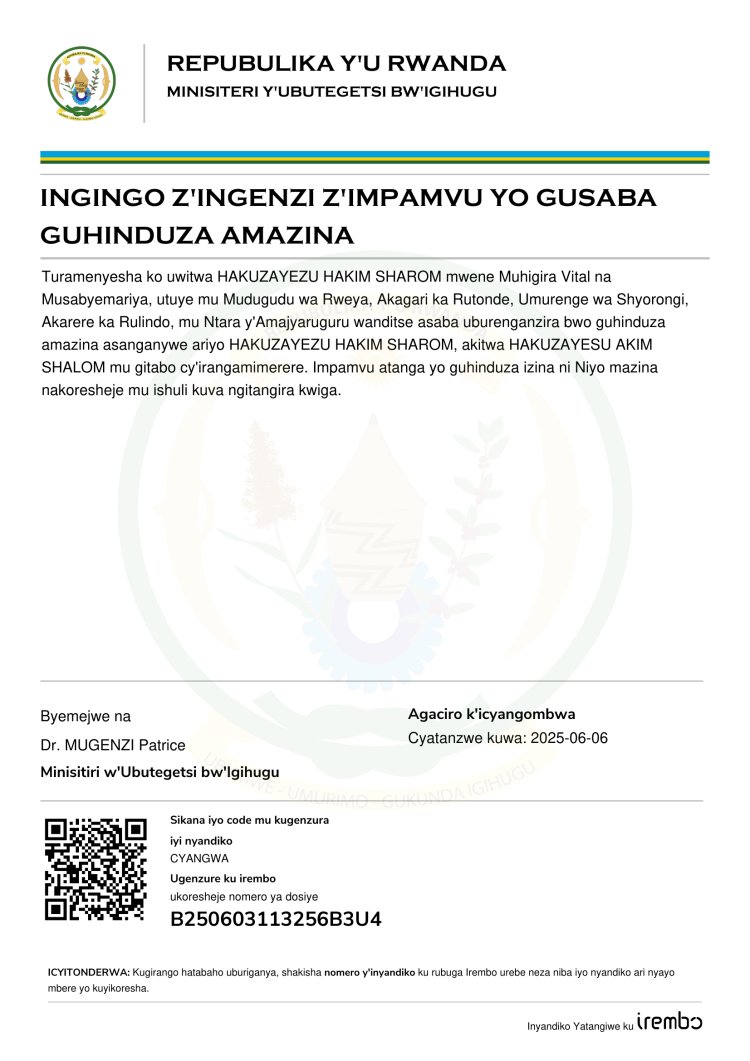 Ingingo z’ingenzi z’impamvu HAKUZAYEZU HAKIM SHAROM, asaba guhindura amazina akitwa HAKUZAYESU AKIM SHALOM