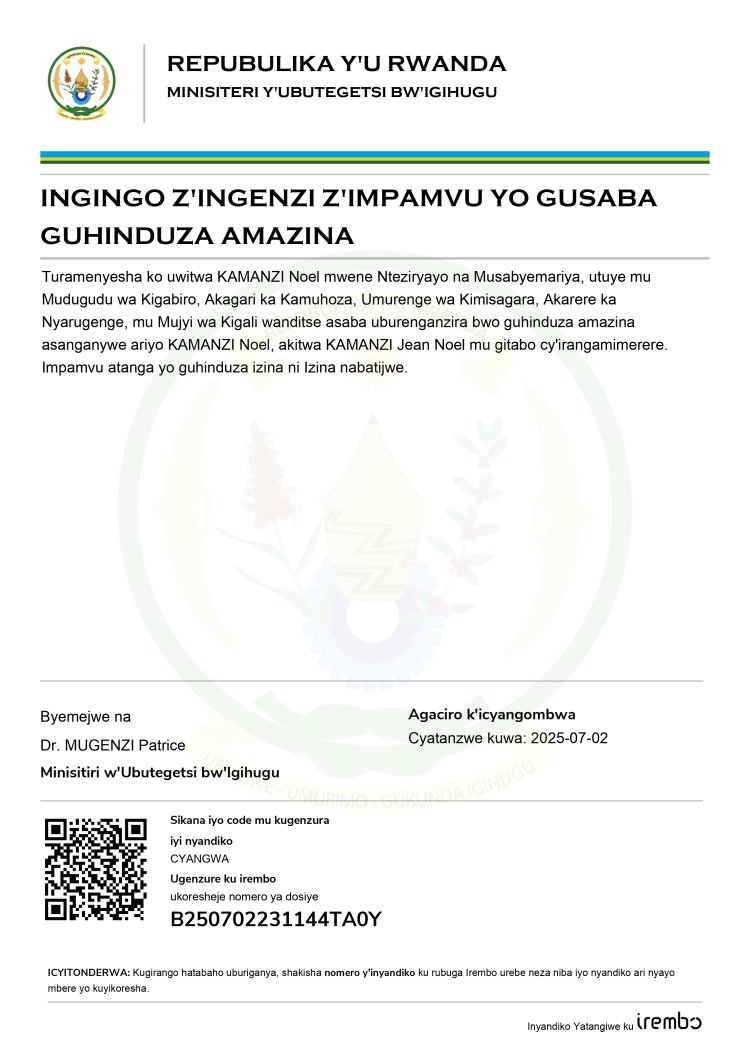 Ingingo z’ingenzi z’impamvu KAMANZI Noel, asaba guhindura amazina akitwa KAMANZI Jean Noel