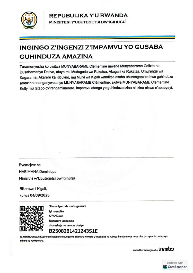 Ingingo z’ingenzi z’impamvu MUNYABARAME Clémentine , asaba guhindura amazina akitwa MUNYABARAME Clementine Kelly