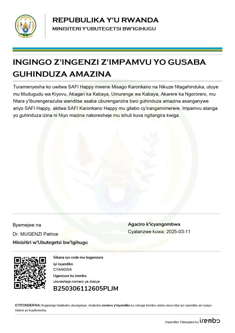 ITANGAZO RYO GUHINDURA AMAZINA