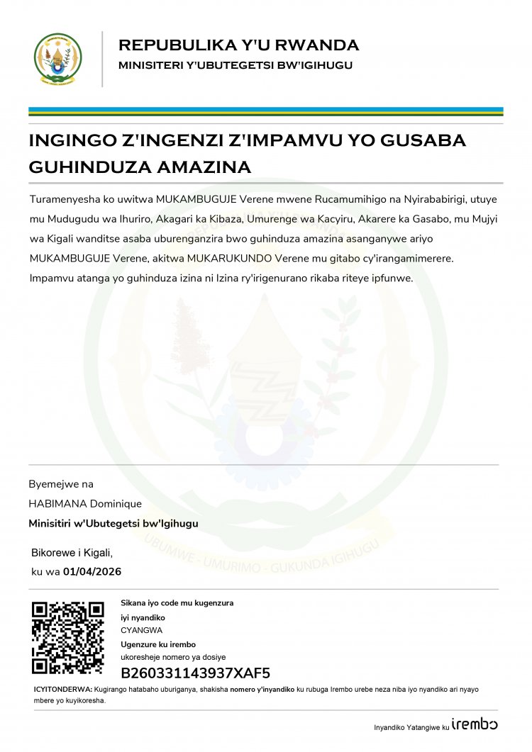 Main reasons for changing names from MUKAMBUGUJE Verene to MUKARUKUNDO Verene