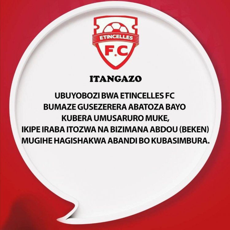 Itangazo rihagarika uyu mutoza ndetse n'abungiriza be ryanyujijwe ku mbuga nkoranyambaga za ekipe aho icyemezo cyo kumuhagarika kuri izi nshingano cyagiraga giti: “Ubuyobozi bwa Etincelles FC bumaze gusezerera abatoza bayo kubera umusaruro muke.Ikipe iraba itozwa na Bizimana Abdou (Bekeni) mu gihe hagishakwa abandi bo kubasimbura.”