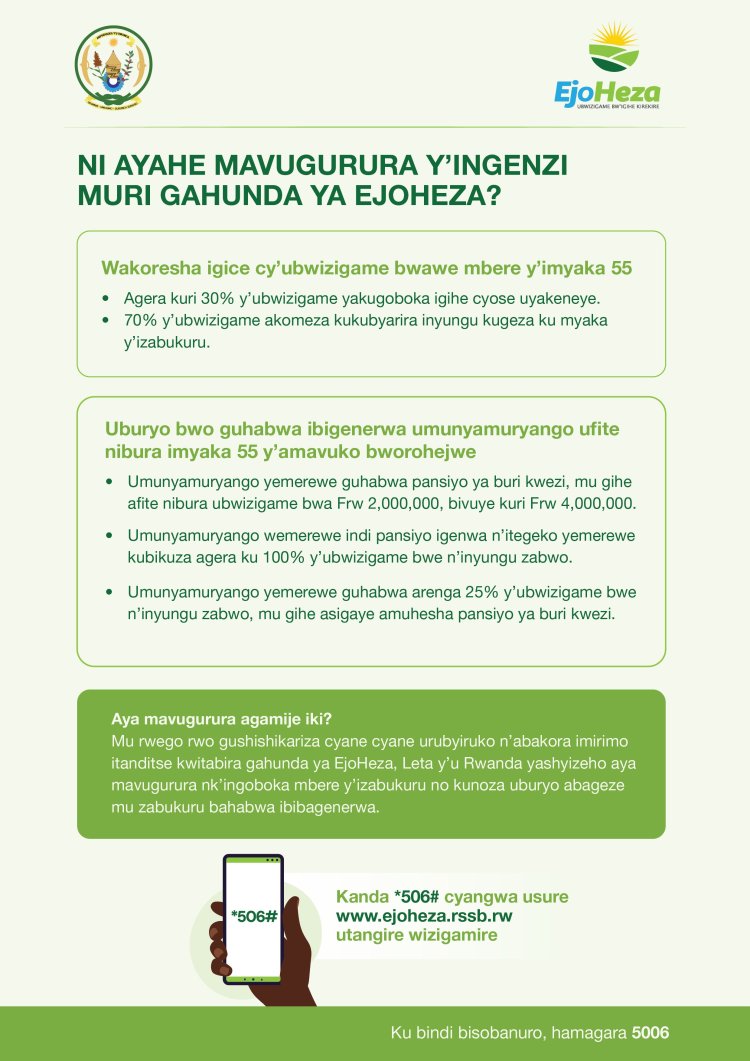Aya mavugurura agamije korohereza abanyamuryango ba Ejo Heza mu micungire y’ubwizigame bwabo, mu gihe bakomeza kwiteganyiriza izabukuru binyuze mu buryo bubaha amahitamo menshi ajyanye n’imibereho yabo. Ni mu gihe mu bihe byashije, bamwe binubiraga ko badashobora kugobokwa n'ubu bwizigame, cyane igihe bahuye n'impamvu zibasana ubushobozi badafite.