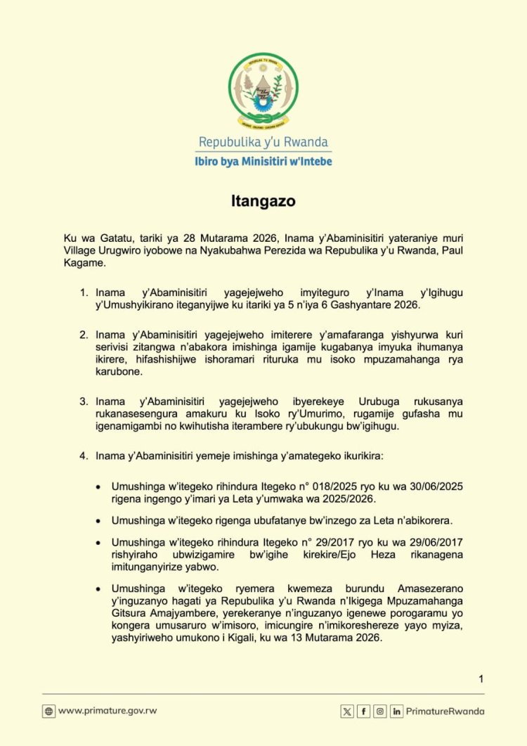Inama y’Abaminisitiri yateranye ku wa 28 Mutarama (01) 2026 yemeje iteka rya Minisitiri rigena uburyo bwo gutanga ibigenerwa umunyamuryango wa Ejo Heza, rishyiraho amavugurura yemerera abanyamuryango gukoresha igice cy’ubwizigame bwabo mbere y’imyaka y’izabukuru ndetse no koroshya ibisabwa kugira ngo bahabwe pansiyo ya buri kwezi.