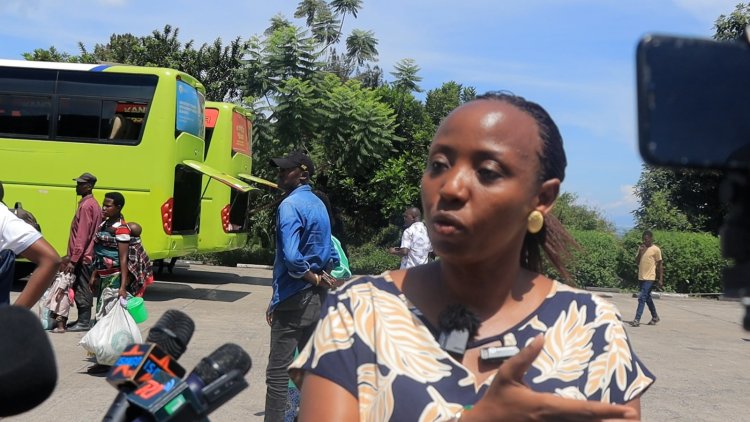 Umujyanama wa Guverineri wa Kivu ya Ruguru irikurebererwa na AFC/ M23, MUREKATETE Marie Chantal, wari waherekeje abari gutahuka, yavuze ko bari gishishikariza n'abasigaye yo gutaha aho guhora bataka guhohoterwa.