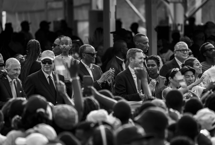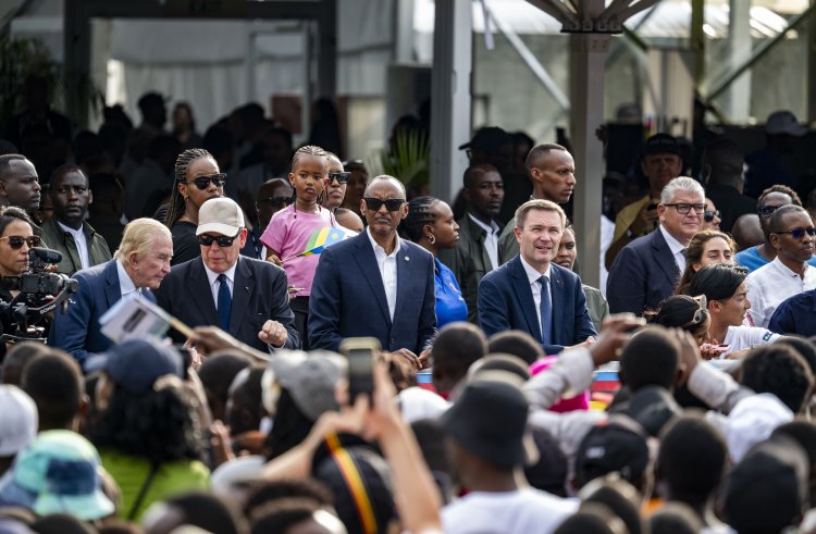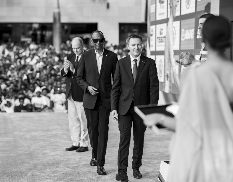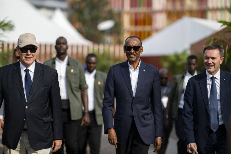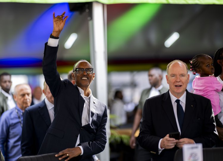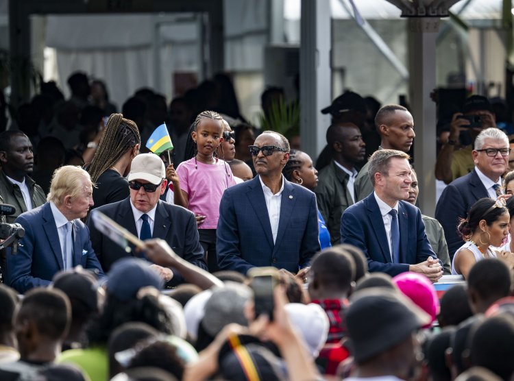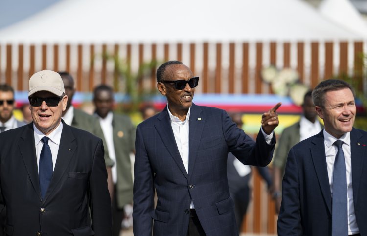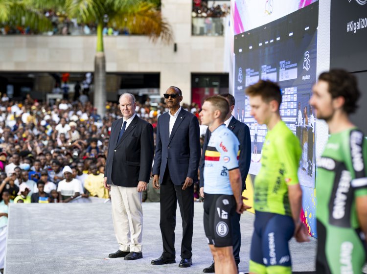 Perezida Kagame ari kumwe n'Igikomangoma Albert II wa Monaco ndetse na David Lappartient Perezida wa UCI