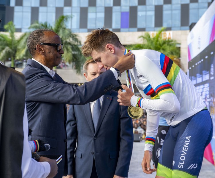 Perezida Kagame ni we wambitse Tadej Pogačar umudari wa zahabu