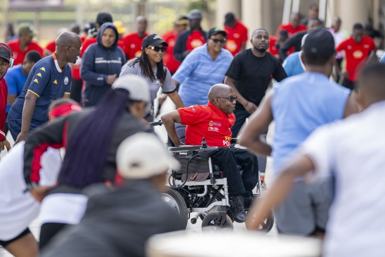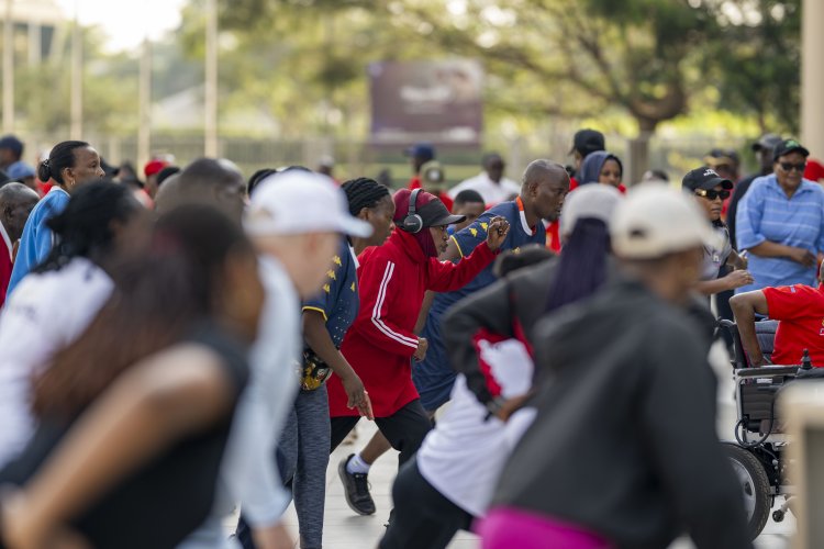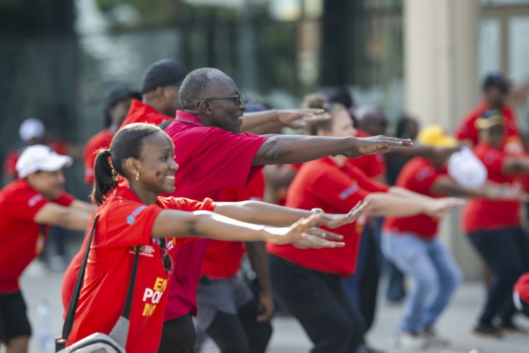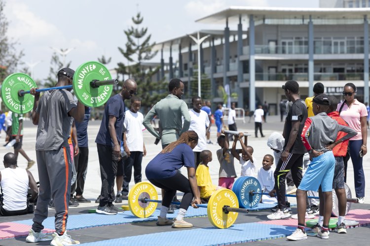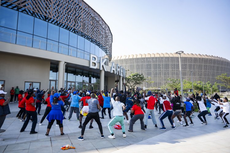 Abantu batandukanye bitabiriye siporo rusange kuri BK Arena
