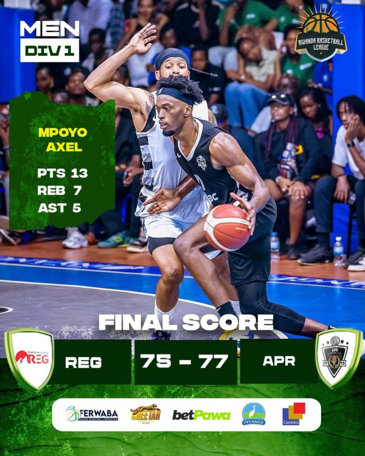 Umukino warangiye APR BBC itsinze REG BBC amanota 77-75 ibasha kwegukana amanota yose y’umukino.