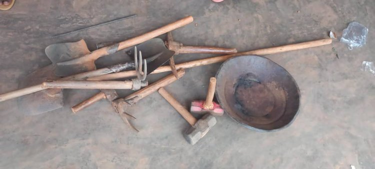 Hafashwe kandi bimwe mu bikoresho bifashisha mu gucukura birimo: inyundo, Majagu, ibisongo, n’ikarayi.