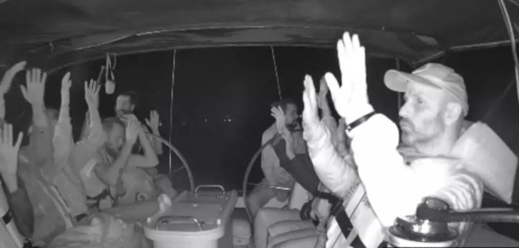 Mu mashusho yatambukijwe ku mbuga nkoranyambaga, abari mu bwato Jeannot III bagaragaye bashyize amaboko hejuru mu rwego rwo kugaragaza ko bta mugambi bafite wo gukora urugomo.