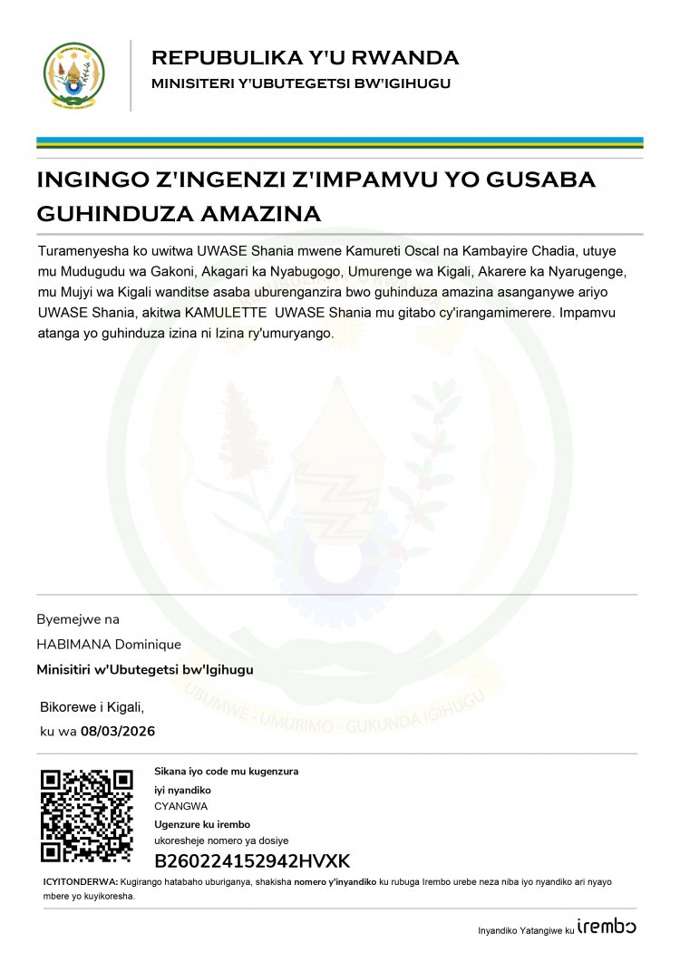 Ingingo z’ingenzi z’impamvu UWASE Shania, asaba guhindura amazina akitwa KAMULETTE UWASE Shania