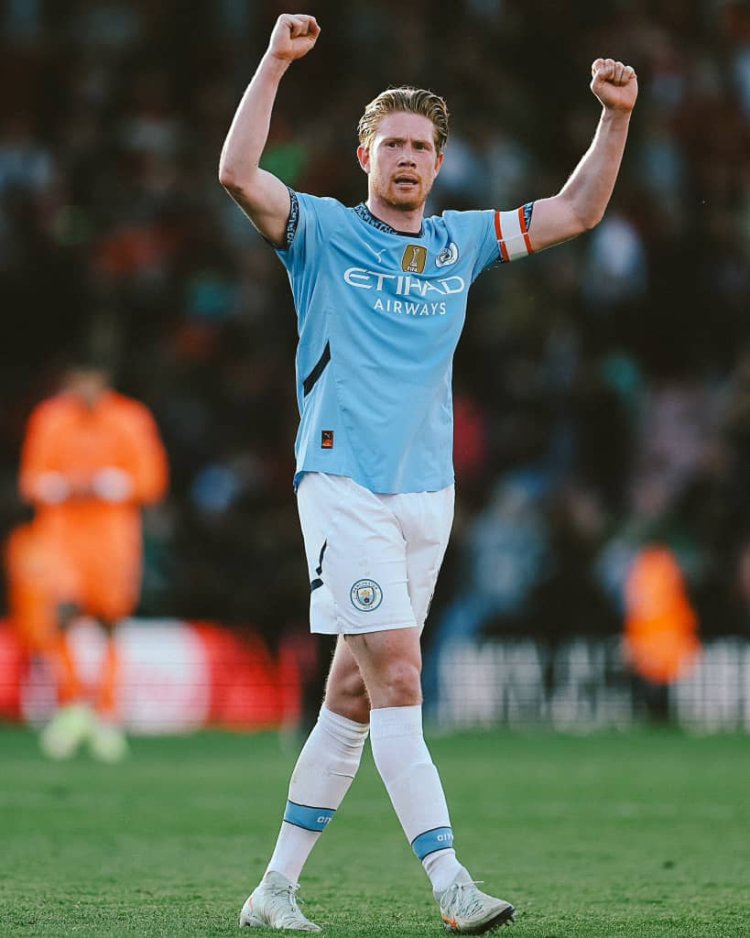 Kevin De Bruyne yatangaje ko ubwo uyu mwaka w'imikino 2024-25 uzaba urangiye atazongera gukinira ikipe ya Manchester city (blue sky) nyuma y'imyaka 10 yaramazemo atangamo imbaraga, ayikinira mu kibuga hagati.