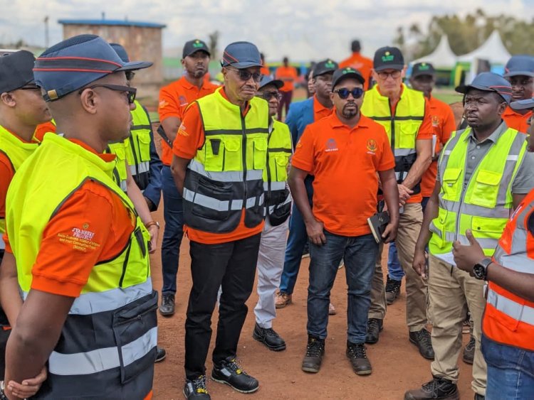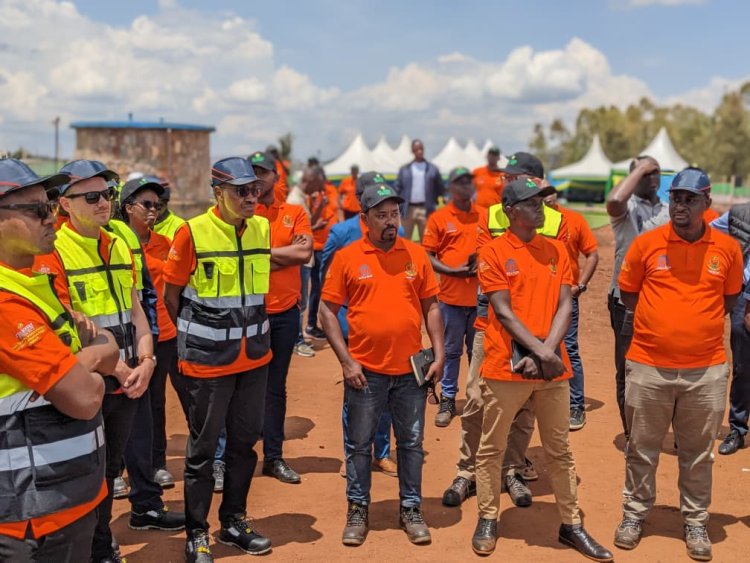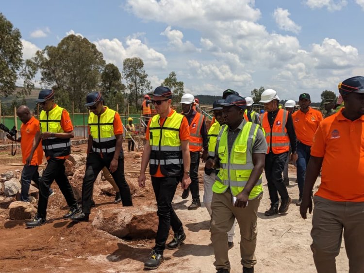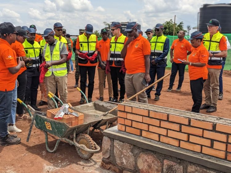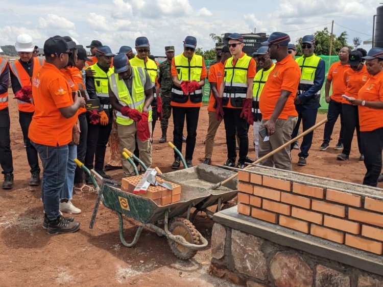 Minisitiri w'ibikorwa by'ubutabazi , Maj Gen (Rtd) Albert Murasira ari kumwe na Ambasaderi w’Ubwami bwa Denmark mu Rwanda Casper Stenger Jensen ndetse n'abandi bayobozi, bari gutangiza ku mugaragaro imirimo yo kuvugurura ikigo nderabuzima cya Nyarubuye mu karere ka Kirehe kugira ngo kizajye gitanga serivise z'ubuvuzi nk'iz'ibitaro.