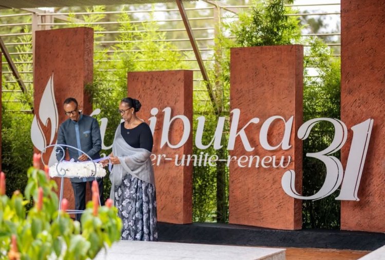 Perezida Paul Kagame na Madamu Jeannette Kagame bacanye urumuri rw’icyizere mu gutangiza ibikorwa byo Kwibuka ku nshuro ya 31 Jenoside yakorewe Abatutsi mu 1994. Iki gikorwa cyabereye ku Rwibutso rwa Jenoside rwa Kigali ku Gisozi, aharuhukiye imibiri y’abazize Jenoside irenga ibihumbi 250. Nyuma yo gucana urumuri, bunamiye inzirakarengane banashyira indabo aho baruhukiye.