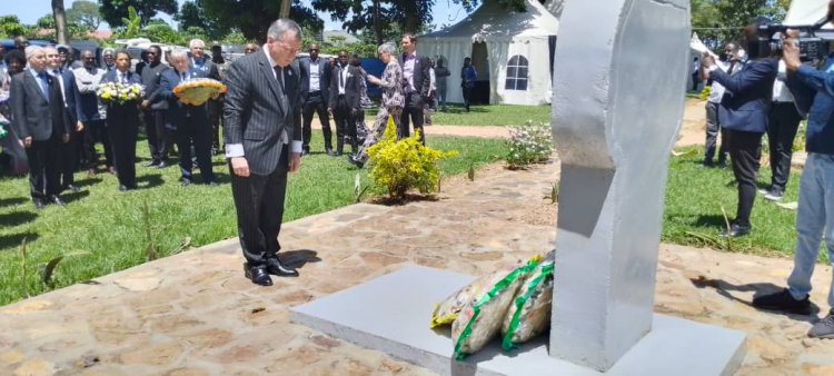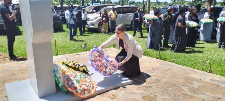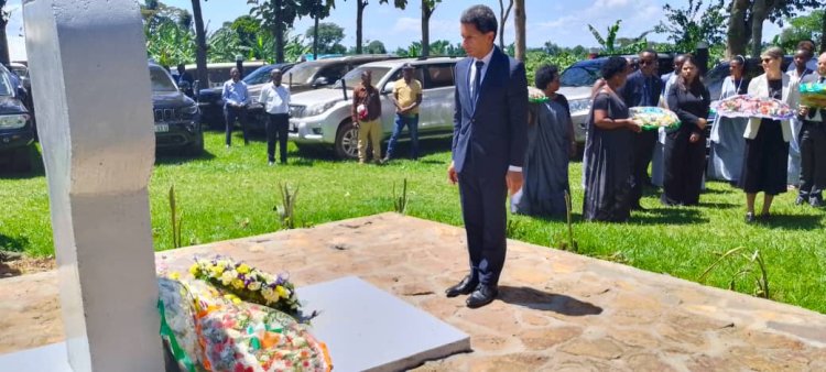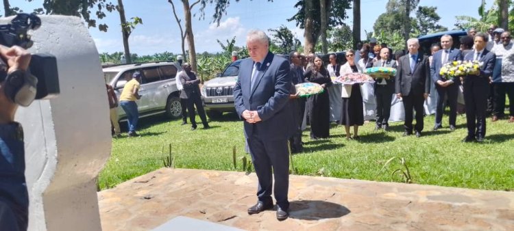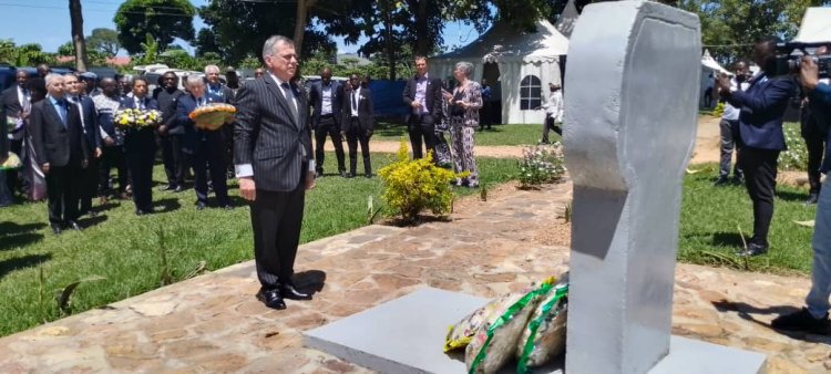 Abahagarariye ibihugu byabo muri Uganda bashyize indabo ku rwibutso rwa Ggolo.