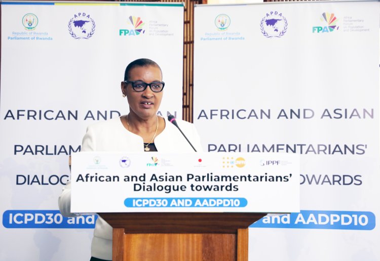 Hon. Mukabyuma Jeanne Henriete ati "iterambere ry'umuturage nicyo twese duharanira, ku buzima bw'imyororokere, ese uburyo tugenda twororoka bihwanye n'ubushobozi bw'igihugu, izo zose ni ingamba ziri bugende zifatirwa hano, kugira ngo turebe ko inzitizi zose zatuma umunyafurika, umunya-Aziya, Umunyarwanda byumwihariko atagira iterambere zikorwaho".