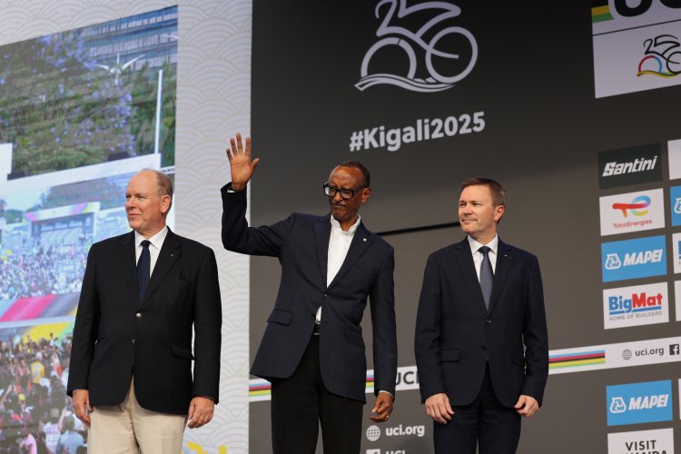 Perezida Kagame yitabiriye umuhango wo gusoza iri rushanwa ari kumwe na Perezida wa UCI, David Lappartient n'Igikomangoma Albert II wa Monaco.
