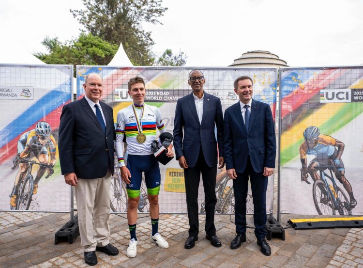 Perezida Kagame ni we wambitse Tadej Pogačar umudari wa zahabu (Amafoto)