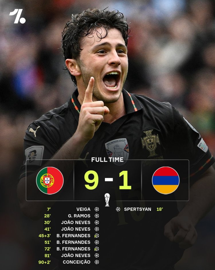 Mu mukino wabaye ku mugoroba wo kuri iki cy'umweru tariki ya 16 Ugushyingo 2025, usize ikipe y'igihugu ya Portugal ikinamwo Cristiano Ronaldo yiyongereye mu bihugu bizitabira imikino ya nyuma y'igikombe cy'isi 2025" cyizaba cyirigukinwa hashize imyaka 96" gitangiye gukinirwa nyuma yo gutangira gukinirwa mu 1930, Portugal yabonye iyi tike nyuma yo gutsinda Armenia ibitego 9 byose kuri kimwe cya Armenia.