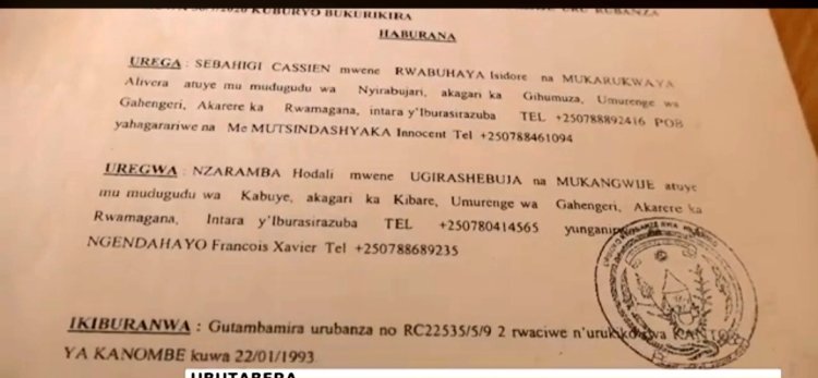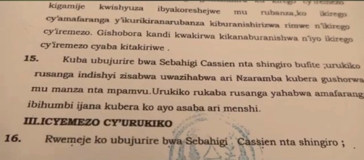 Ku ruhande rwa Sebahizi Cassien, avuga ko ibivugwa na Nzaramba Hodari by'uko yatsinze imanza byose ari ibinyoma kuko n'impapuro z'inkiko afite ari impimbano.